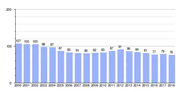 | Gráfica de evolución demográfica de Santaya entre 2000 y 2018 |