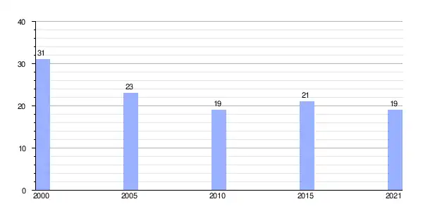 | Gráfica de evolución demográfica de Santalla (aldea) entre 2000 y 2021 |