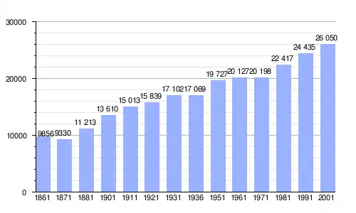 | Gráfica de evolución demográfica de Santeramo in Colle entre 1861 y 2001 |