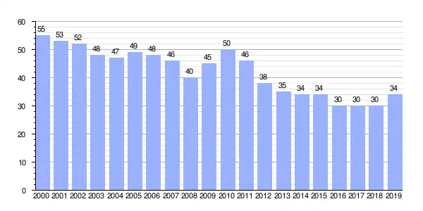 | Gráfica de evolución demográfica de Santiago entre 2000 y 2019 |