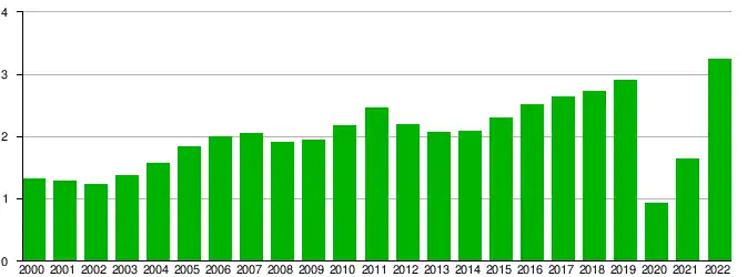 | 2022 | 3,002,600 | 23.633 | 4,356 |