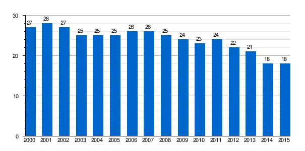 | Gráfica de evolución demográfica de Santibáñez de la Lomba entre 2000 y 2015 |