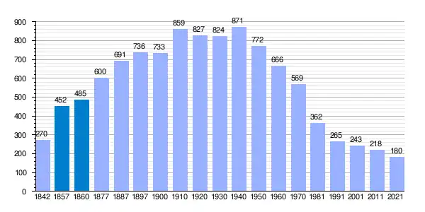 | Gráfica de evolución demográfica de Santibáñez de la Sierra[6] entre 1842 y 2021 |