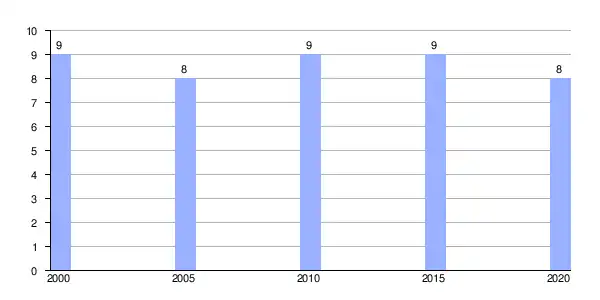 | Gráfica de evolución demográfica de Santiorxo entre 2000 y 2020 |