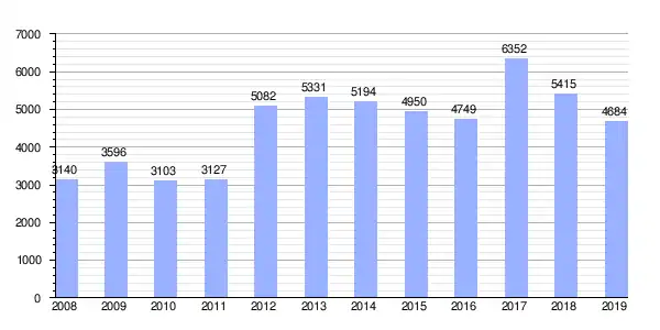 | Gráfica de evolución demográfica de Santiponce[6] entre 1842 y 2021 |