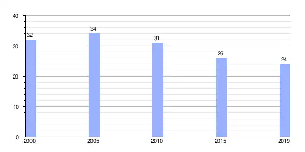 | Gráfica de evolución demográfica de Santiso entre 2000 y 2019 |