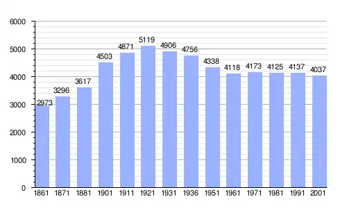 | Gráfica de evolución demográfica de Santo Stefano Belbo entre 1861 y 2001 |