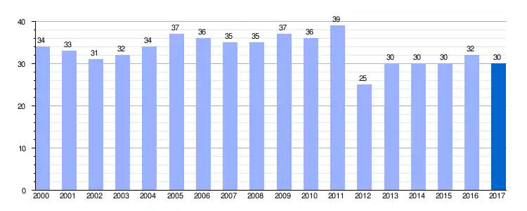 | Gráfica de evolución demográfica de Santotís entre 2000 y 2017 |
