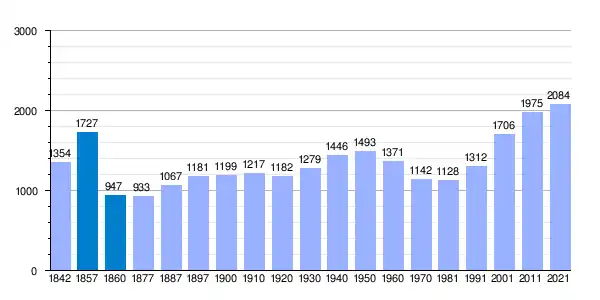 | Gráfica de evolución demográfica de Santovenia de la Valdoncina[6] entre 1842 y 2021 |