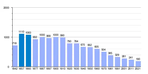 | Gráfica de evolución demográfica de Santoyo[2] entre 1842 y 2021 |