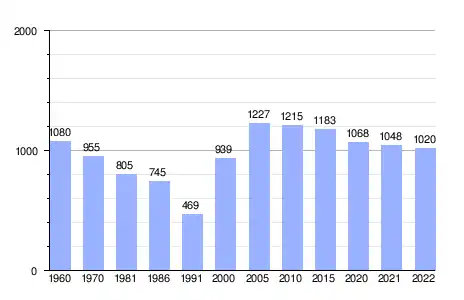 | Gráfica de evolución demográfica de Santullano entre 1960 y 2022 |