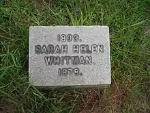Whitman murió en 1878, a los 75 años de edad, en casa de un amigo, en la calle Bowen, de Providence (Rhode Island),[12] y está enterrada en el North Burial Ground. En su testamento, se destina la mayor parte de su patrimonio a la publicación de su propia poesía y la de su hermana. También dejó dinero a la Providence Association for the Benefit of Colored Children (a favor de los niños de color) y la Rhode Island Society for the Prevention of Cruelty to Animals (protectora de animales), ambas de su ciudad.[13]