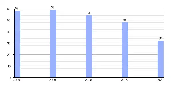 | Gráfica de evolución demográfica de Sarreaus entre 2000 y 2022 |