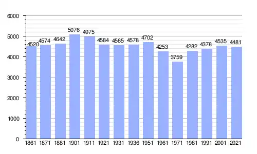 | Gráfica de evolución demográfica de Sarteano entre 1861 y 2021 |