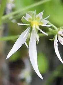 Saxifraga stolonifera, conocida comúnmente como saxifraga o geranio de fresas, es una especie de planta fanerógama perteneciente a la familia Saxifragaceae, es nativa de Asia pero se ha extendido a otros continentes.[1]