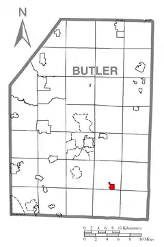 ![]() Ubicación en el condado de Butler ![]() Ubicación del condado en Pensilvania ![]() Ubicación de Pensilvania en EE. UU. | ||
