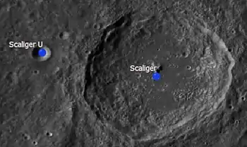 ![]() Localización de Scaliger (en el centro de la imagen, junto al sector noroeste del borde de Milne) |
