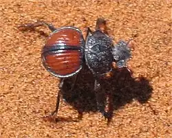 Scarabaeus denticollis es una especie de escarabajo del género Scarabaeus, familia Scarabaeidae.[1] Fue descrita científicamente por Péringuey en 1888.[1]