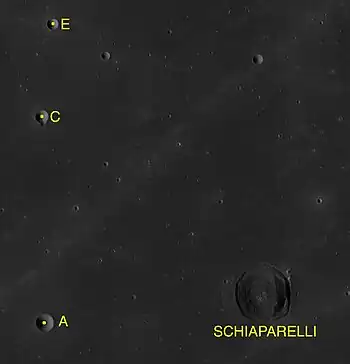 Por convención estos elementos son identificados en los mapas lunares poniendo la letra en el lado del punto medio del cráter que está más cercano a Schiaparelli.