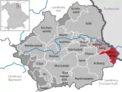 Se encuentra ubicado al noreste del estado, en la región de Alta Franconia, en la montañas del Fichtelgebirge, cerca de la orilla del río Ohře —un afluente izquierdo del río Elba— y de la frontera con República Checa.