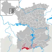 Se encuentra ubicado a poca distancia al norte de la frontera con los estados de Sajonia y Baviera.