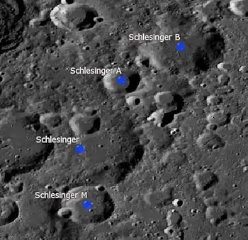 Por convención estos elementos son identificados en los mapas lunares poniendo la letra en el lado del punto medio del cráter que está más cercano a Schlesinger.
