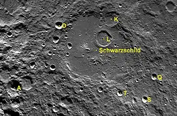 Por convención estos elementos son identificados en los mapas lunares poniendo la letra en el lado del punto medio del cráter que está más cercano a Schwarzschild.