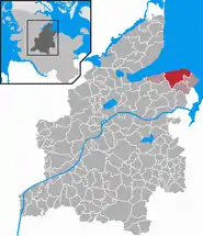 Se encuentra ubicado en el área centro-este del estado, cerca de las ciudades independientes de Schleswig y Kiel, de la costa del mar Báltico y del canal de Kiel.