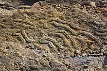 Se trata de trazas fósiles muy comunes realizadas por diferentes grupos animales en su desplazamiento sobre el fango del fondo marino, bajo la arena o en la zona de transición entre una y otra zona. Cuando estos rastros no presentan el ribeteado trasversal su realización suele asignarse a miembros de varios grupos de gasterópodos y crustáceos. En los rastros del periodo Cretácico en adelante comienza a aparecer el ribeteado trasversal de las franjas laterales, en estos casos la formación de las marcas se asignan a diferentes especies de espatángidos u otros grupos de equinoides.[2]
