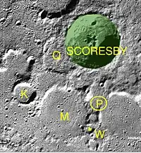 Por convención estos elementos son identificados en los mapas lunares poniendo la letra en el lado del punto medio del cráter que está más cercano a Scoresby.