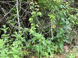 Es una hierba perenne, con rizomas tortuosos de corteza suberosa, glabra o glabrescente. Tallos hasta de 85 cm, ramificados, glabros. Hojas indivisas o pinnatisectas con un segmento terminal grande y hasta 2 segmentos laterales más pequeños, hasta de 3 cm, pinnatinervias o subpalmatinervias, con nervadura sin formar retículo marcado, lustrosas, delgadas, glabras o, a veces, con cortos pelos glandulíferos hasta de 0,2 mm en los nervios, pecíolo y márgenes; las inferiores con limbo completo –si indivisas– o segmento terminal de (2,7)4-12,5 × (1,8)3-9,5 cm, anchamente ovado, triangular-ovado o suborbicular, obtuso, cordiforme o subtruncado en la base, crenado- lobado, a veces con los lóbulos ligeramente superpuestos, pecíolo hasta de 18,5 cm; las superiores con limbo completo –si indivisas– o segmento terminal de 2-10 × 1,7-8,5 cm, ovado, crenado-lobado o lobado-serrado, pecíolo 0,7-7,5(12,5) cm.[1]