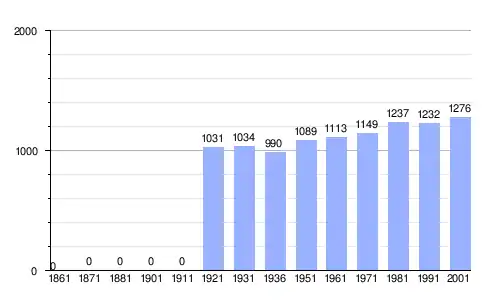 | Gráfica de evolución demográfica de Scurelle entre 1861 y 2001 |