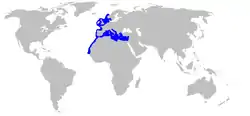 Se encuentra en aguas frías y templadas, distribuido en el Atlántico nororiental, desde Noruega e islas británicas hasta Senegal y Costa de Marfil, incluyendo el Mediterráneo, donde es más abundante.