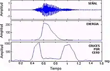 La variación de energía en la señal de voz se debe a la variación de la presión subglotal y de la forma del tracto vocal. La Energía es útil para distinguir segmentos sordos y sonoros en la señal de voz, debido a que los valores de esta característica aumentan en los sonidos sonoros respecto a los sordos.