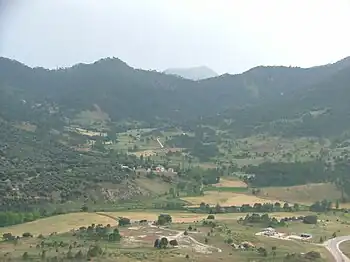 Panorámica desde Riópar Viejo. Al fondo cumbre del Padroncillo (1582 m s. n. m.) Sierra de Alcaraz.