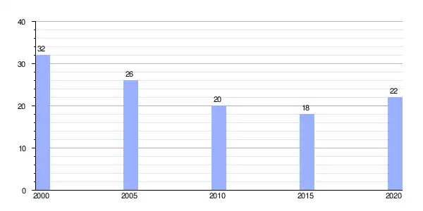 | Gráfica de evolución demográfica de Sebane (aldea) entre 2000 y 2020 |