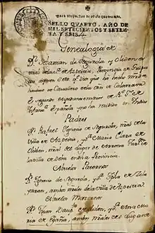 "que S. M. ha venido en conceder a cada una de las dos hijas de Dn. Sebastián de Segurola Govor. e Intendente que fué de La Paz la pensión anual vitalicia de 200 ps.$ en atención al mérito de su padre en los 33 años que sirvió"[5]