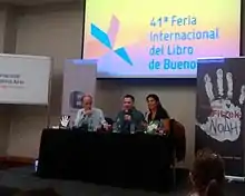 Sebastian Fitzek (centro) en la Feria Internacional del Libro de Buenos Aires en abril de 2015