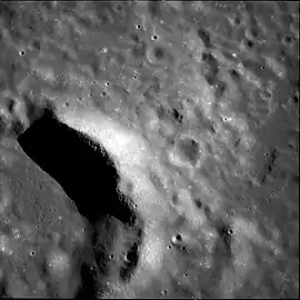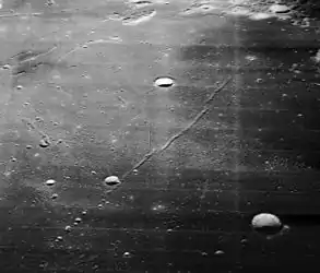 Vista oblicua de la Rima Messier desde el Lunar Orbiter 5, mostrando Secchi X por encima del centro y Secchi K abajo a la derecha