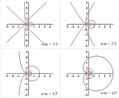 así que . Restando repetidamente y entre sí como en el algoritmo de Euclides, se puede construir el ángulo . Por lo tanto, la curva es una m-sectriz, lo que significa que con la ayuda de la curva se puede dividir un ángulo arbitrario por cualquier número entero. Esta es una generalización del concepto de trisectriz, del que se muestran ejemplos más adelante.