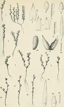 Es una planta anual, glabra, rojiza o glauca. Raíz principal ± desarrollada. Tallo de 1,6(6) cm, erecto. Hojas de 3-4 x 1,5-2 mm, alternas, erectas, que llegan a ocultar el tallo, oblongas, engrosadas, con espolón escarioso en la base, margen ciliado y denticulado. Flores tetrámeras o pentámeras, solitarias, sésiles, axilares. Sépalos 2-3 mm, libres, estrechamente lanceolados, margen ciliado. Pétalos 1,5-2,5 mm, más cortos que los sépalos, estrechamente lanceolados, agudos, blanquecinos con textura escariosa. Estambres 4-5, de la misma longitud que los pétalos; anteras amarillas. Folículos c. 2,5 mm, aproximadamente de la misma longitud que los sépalos o algo más cortos, erectos o erecto-divergentes, papilosos, de color rojo obscuro; estilo corto. Semillas ovoides, apiculadas; testa reticulada; ápice agudo. Tiene un número de cromosomas de 2n = 26*, 52*.[1]