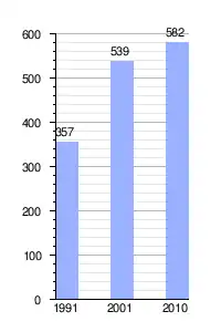 | Gráfica de evolución demográfica de Seeber entre 1991 y 2010 |