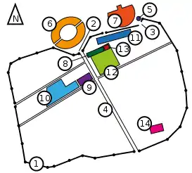Principales construcciones encontradas en el yacimiento de Segógriga.[13]