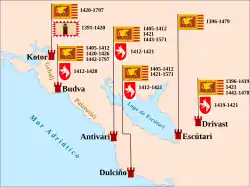 - Kotor (Montenegro) Pomorski muzej (1969). Annual of Maritime Museum at Kotor (en serbio). Kotor. p. 34. Consultado el 29 de julio de 2012. «Prvi skadarski rat protiv Balse III 1405-1412.»
