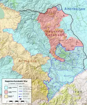 La segunda guerra del Alto Karabaj[lower-alpha 3] fue un conflicto armado entre las fuerzas armadas de Azerbaiyán contra Armenia y la República de Artsaj en la región del Alto Karabaj desarrollado entre el 27 de septiembre y el 10 de noviembre de 2020 tras un acuerdo de alto al fuego. Fue hasta los enfrentamientos de 2023, la última escalada significativa del aún vigente conflicto del Alto Karabaj.