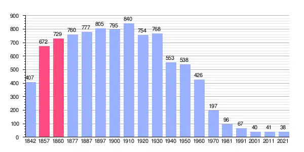 | Gráfica de evolución demográfica de Segura de los Baños[7][8] entre 1842 y 2021 |