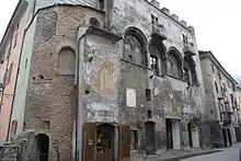 - La antigua iglesia de Santa Maria Maggiore, de la que sólo se conserva la fachada (del siglo XV) y la torre románica, de 40 metros de altura y apoyada en la muralla de la ciudad.[6]