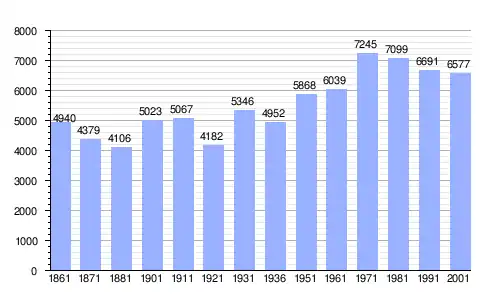 | Gráfica de evolución demográfica de Susa entre 1861 y 2001 |