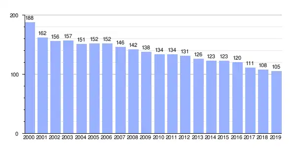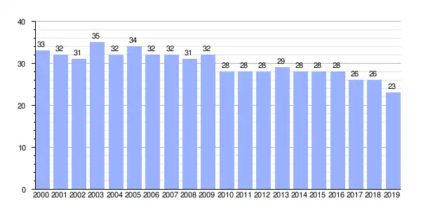| Gráfica de evolución demográfica de Seixas (lugar) entre 2000 y 2019 |
