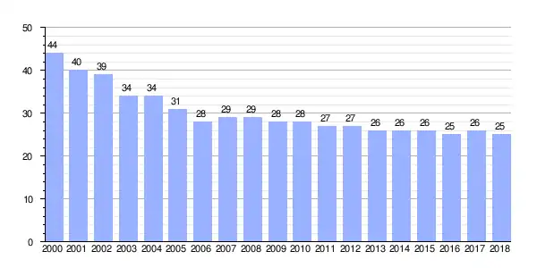 | Gráfica de evolución demográfica de Seixas entre 2000 y 2018 |